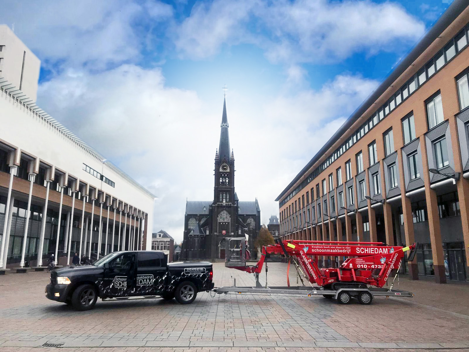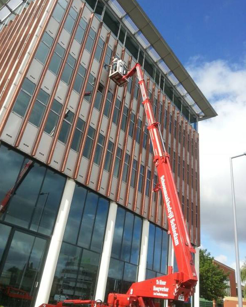 Schoonmaakbedrijf Schiedam heeft de beschikking over eigen hoogwerkers. Wij kunnen ons in elke situatie verplaatsen.